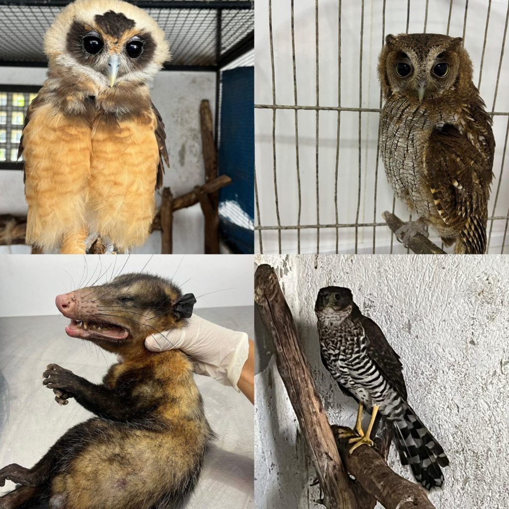 Entre os animais atendidos estão aves da Mata Atlântica, como corujas, gaviões, sabiás, sanhaços e maritacas, além de mamíferos e répteis, incluindo gambás, cuícas e teiús. Parte dos resgates ocorreu com apoio da Guarda Municipal de São Gonçalo.