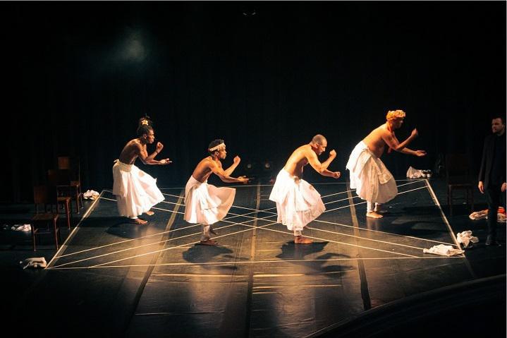 Quatro homens pretos, entre 40 e 60 anos, LGBTQIAPN+, trazem suas vivências para o centro da discussão numa encruzilhada.